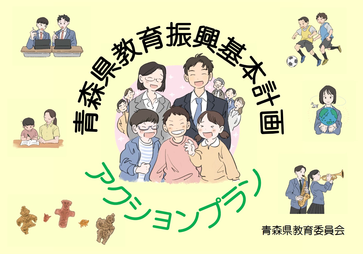 「青森県教育振興基本計画」は、未来を担うこどもたちのために、青森県の教育の方向性や取組を定めた計画です。皆さんに「青森で学べて日本一幸せ」と思ってもらえるよう、県民全体で「こどもまんなか青森」をめざします。